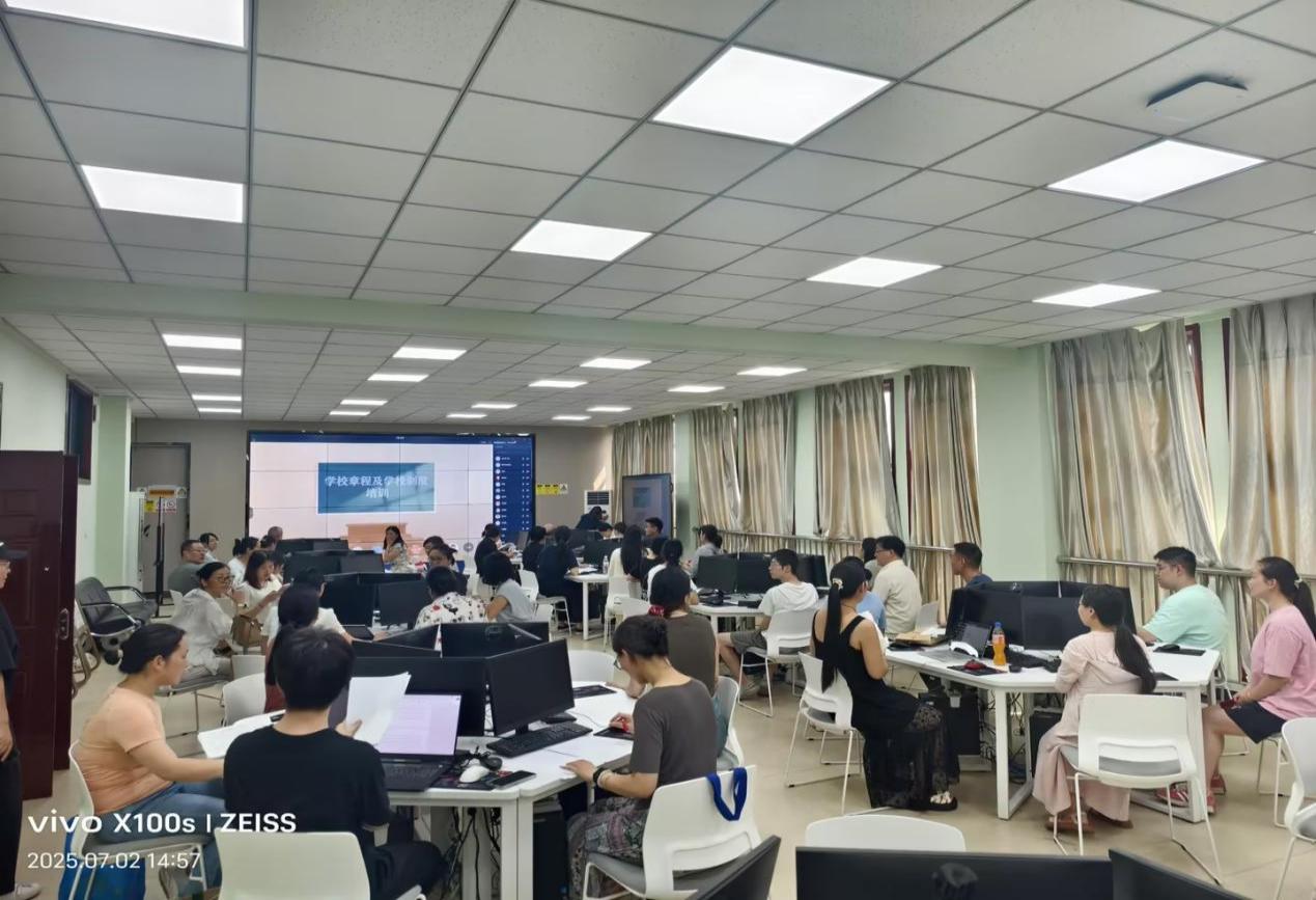 7月2日下午,公司工会主席、董事长助理高红艳在建工楼天健厅做了主题为“公司章程及管理制度”专题培训。培训由教师发展中心贾灵充主任主持,全体教职工通过线上和线下的方式进行培训。