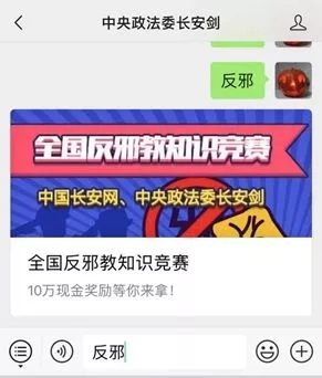 或者,您也可以在对话框内回复“反邪”,将直接获取竞赛入口: