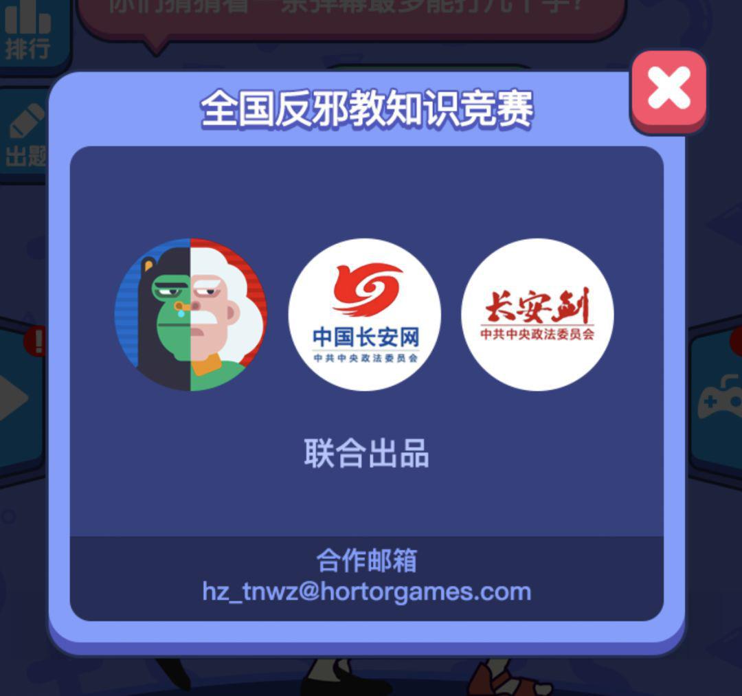 由中国长安网、中央政法委长安剑联合主办,教育部思想政治工作司、全国妇联权益部、共青团中央宣传部、中国反邪教协会、中国反邪教网共同协办,与”头脑王者“重磅推出小程序答题对战专题——