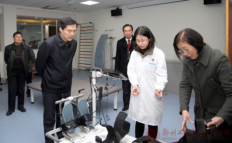 图为省教育厅张亚伟副厅长视察医学实验室