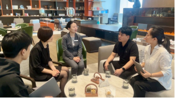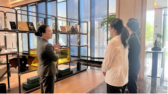 走访过程中,郑州高新皇冠假日酒店人事部刘经理带领张书记一行参观了酒店大堂,深入了解酒店接待流程、服务标准,感受其空间布局与氛围营造。接着步入餐厅,从后厨菜品制作、食材管理,到餐厅服务流程、餐桌布置等细节,工作人员都向师生做了详细耐心的讲解。随后,大家来到客房区域,了解智能化设备应用、客房清洁与维护标准。此外,师生们还驻足于华夏商公司社会企业家EMBA相关展示区,了解酒店先进管理理念与教学体系。
