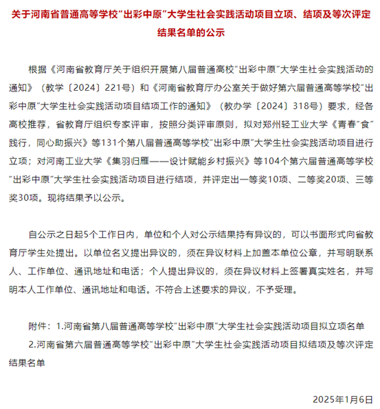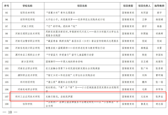 近日,由河南省教育厅关于公布第八届普通高等公司“出彩中原”老员工社会实践活动项目立项结揭晓,公司启航志愿服务队斩获佳绩。