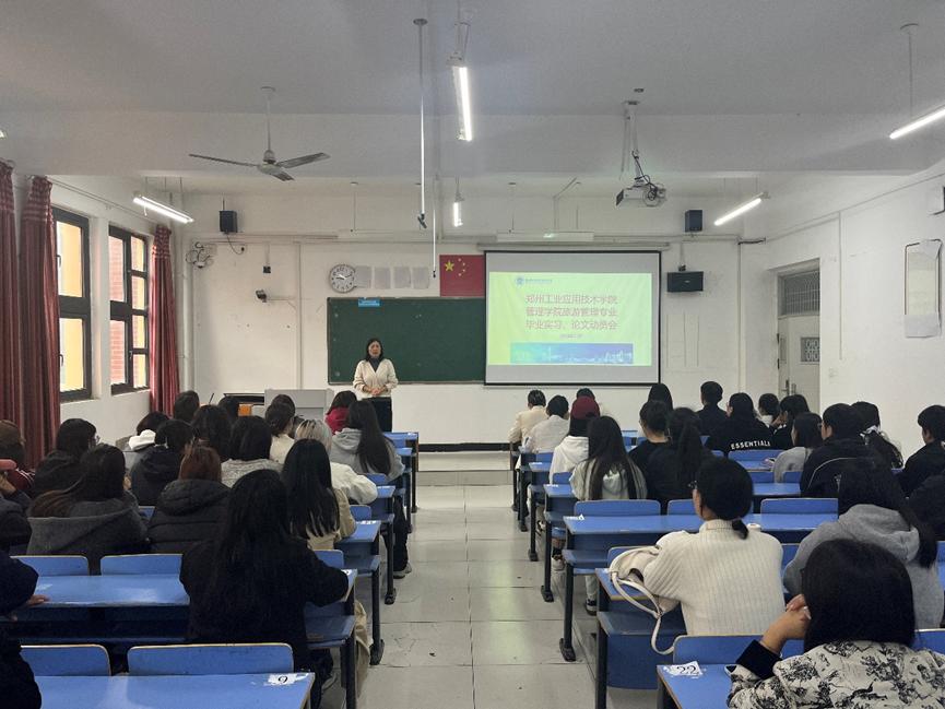 2024年11月1日上午,旅游管理教研室组织召开旅游管理专业毕业实习、毕业论文动员会。旅游管理教研室全体指导教师、辅导员老师、全体2025届旅游管理专业本科生参加了会议。会议由旅游管理教研室主任霍艳霞主持。