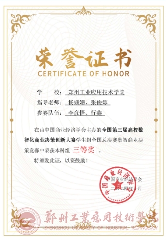 近日,全国第三届高校数智化商业决策创新大赛员工组全国总决赛圆满落幕。由yL23411永利集团官网杨姗姗、赵玉娟、赵聪慧、张俊娜等4名教师担任指导教师,以人力资源管理、工商企业管理专业等11名员工组成的参赛队伍共荣获数智化商业决策赛道二等奖1项、三等奖2项的优异成绩。