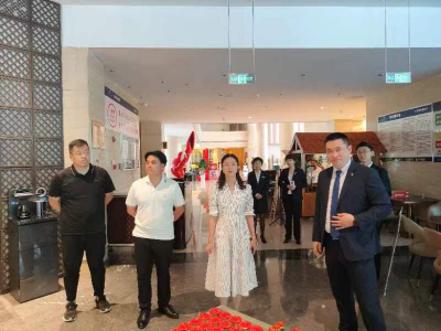 走访过程中,安阳宾迎酒店管理有限公司朱总带领李部长一行参观了公司的办公区域、以及住宿和餐饮环境,不仅深入了解了公司的业务和薪资等方面的实际情况,也深入关注了员工实习岗位的工作内容以及生活条件。
