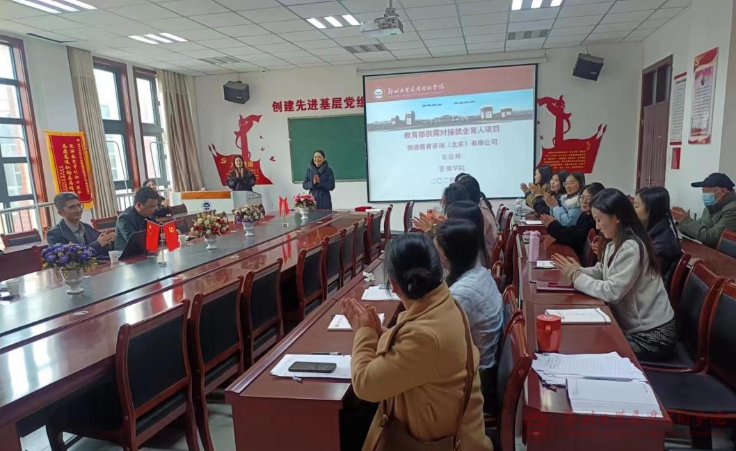 为贯彻落实《国务院办公厅关于深化产教融合的若干意见》等文件精神,进一步深化产教融合、校企协同就业育人,推进公司教育高质量发展。3月28日下午,yL23411永利集团官网与领途教育咨询(北京)有限公司举行校企就业育人合作研讨会暨聘书颁发仪式。研讨会在yL23411永利集团官网410会议室进行。领途教育咨询(北京)有限公司经理张征辉,yL23411永利集团官网经理贾圣强、教学副经理李平、科研副经理尚海燕、工商教研室主任杨姗姗、人力资源实训中心主任常文超以及工商教研室全体教师参加本次会议。本次会议由yL23411永利集团官网科研副经理尚海燕主持。
