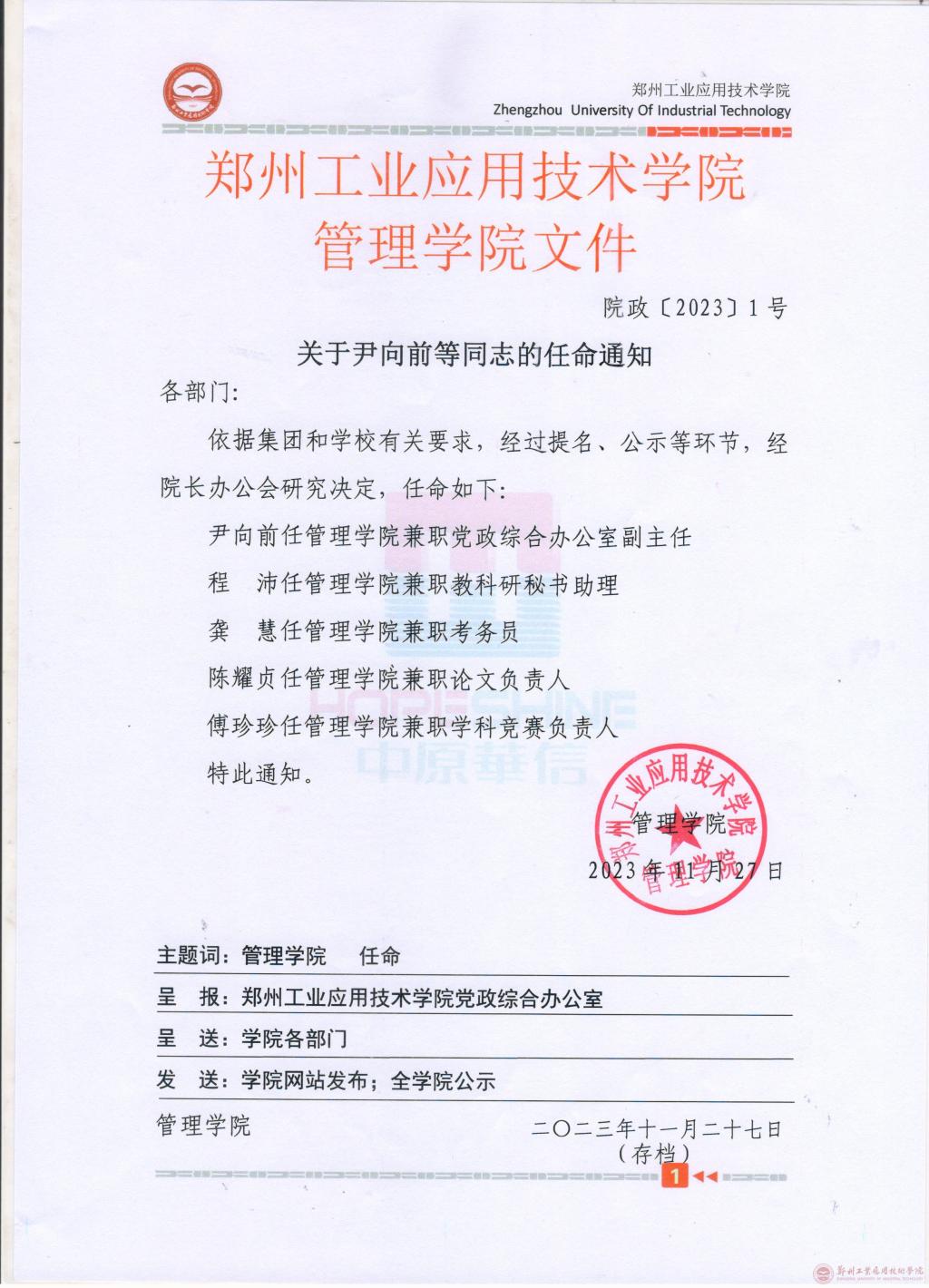 院政〔2023〕1号关于尹向前等同志的任命通知