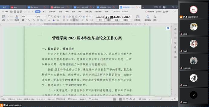 图一:邹磊副主任对2023届本科生毕业论文工作方案进行解读