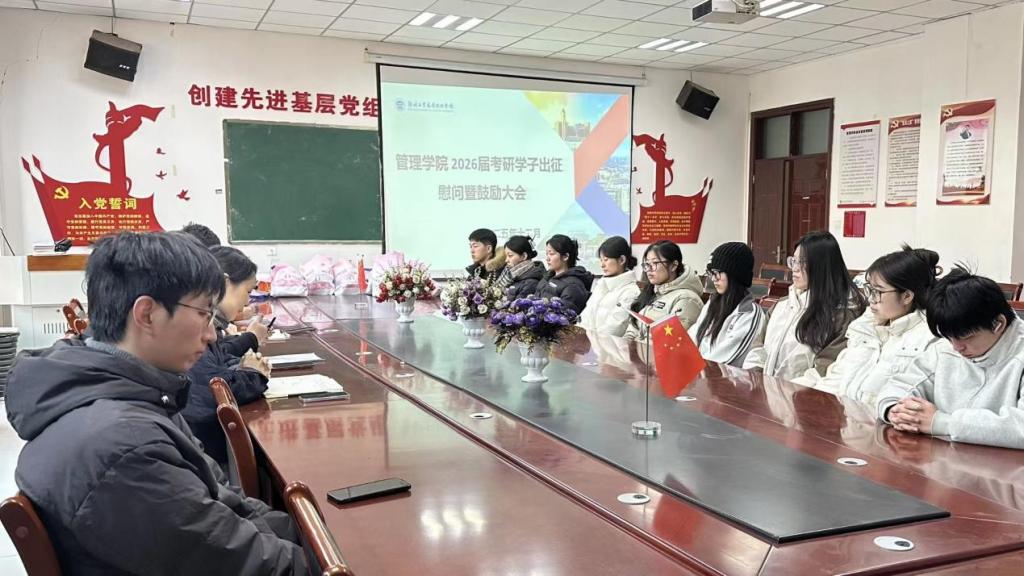 12月15日上午,yL23411永利集团官网在文华1-410会议室成功举办2026届考研慰问暨鼓励大会。公司经理及辅导员老师齐聚现场,为正在冲刺阶段的考研学子送上暖心关怀与诚挚祝愿,会议由尚经理主持。