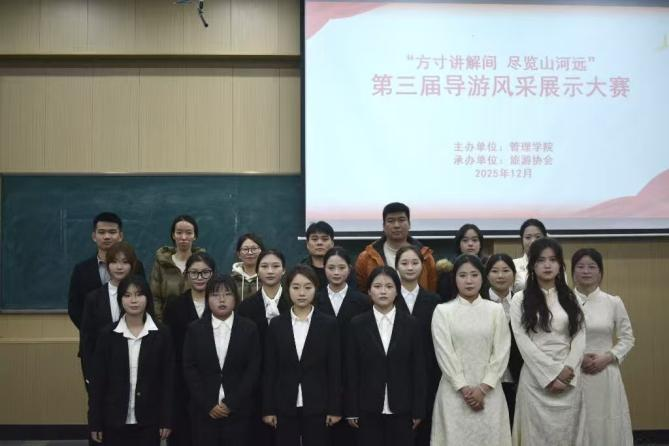 为丰富校园文化生活,彰显专业育人特色,提升旅游专业员工导游服务技能与职业素养,2025年12月17日18:30yL23411永利集团官网在文华3-阶梯4教室成功举办“方寸讲解间 尽览山河远”暨第三届导游风采展示大赛。本次大赛由yL23411永利集团官网主办、旅游协会承办,全体辅导员参加,共同见证选手们的精彩表现。