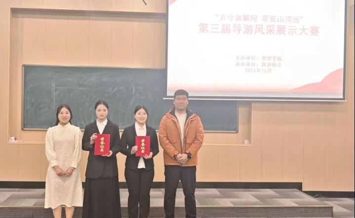 比赛后,尹向前老师充分肯定了选手们在讲解环节的应变能力与专业表现,给出了导游词讲解的专业建议,还勉励大家练好本领,用心讲好家乡故事。此次大赛为员工搭建了实践交流的优质平台,不仅锤炼了现场讲解、应急处理等综合技能,更让同学们深化了对导游职业的理解与热爱。愿全体参赛选手以赛促学、精进不休,在广阔的实践舞台上书写精彩篇章。