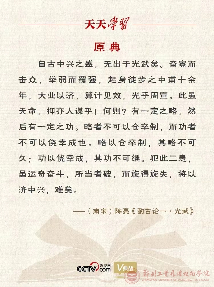 陈亮,南宋著名思想家、文学家,一生以收复失地、统一祖国为己任。1161—1162年,正值金人继续南下受挫、南宋王朝对金和战未决之时,时年十八九岁的陈亮便写成了一部服务抗金现实斗争的军事理论著作《酌古论》。