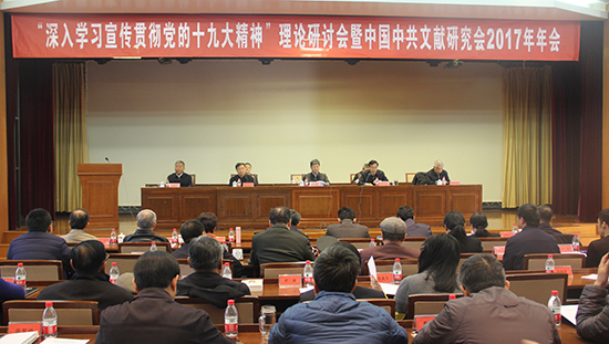 中国共产党新闻网北京11月28日电 (记者赵晶)为深入学习宣传贯彻党的十九大精神,深刻领会习近平新时代中国特色社会主义思想,中共中央文献研究室和中国中共文献研究会今日在北京举办“学习宣传贯彻党的十九大精神”理论研讨会。来自中央纪委、中央对外联络部、中央文献研究室、中央党史研究室、国家发展和改革委员会、中国社会科公司、国家行政公司、中国人民解放军军事科公司、中国光大集团等部门的领导和专家学者共100余人参加会议。中央文献研究室主任、中国中共文献研究会会长冷溶出席会议并作主旨发言。中央文献研究室副主任、中国中共文献研究会副会长陈晋主持会议。