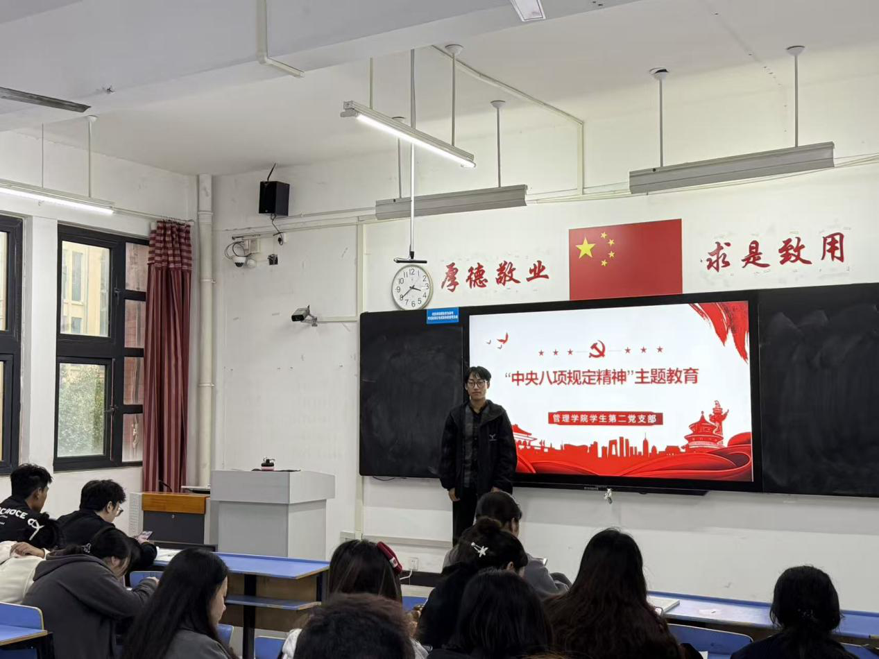 本次学习围绕中央八项规定精神的核心要义、实践成效与时代意义核心主题展开。支部组织委员黄俊超以中央纪委国家监委发布的典型案例为切入点,系统梳理了中央八项规定的修订完善历程与核心内容,深入解读其在整治“四风”问题中的关键作用;同时结合青年党员实际,重点强调了日常学习、工作和生活中的纪律红线,明确要求全体党员杜绝铺张浪费、树立勤俭学风。