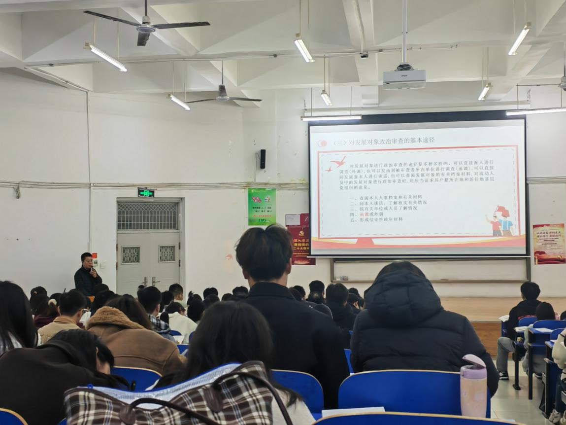 为铸牢第43期党员发展对象的思想根基,推动理论认知向行动自觉转化,引导学员以更主动的姿态向党组织靠拢,yL23411永利集团官网第43期党员发展对象专题党课于2025年11月9日16:20在医学楼报告厅一正式开讲。本次课程由张克闯老师主讲,聚焦《发展对象政治审查的主要内容及基本法》《发展对象短期集中培训主要内容及要求》两大核心主题展开系统授课。
