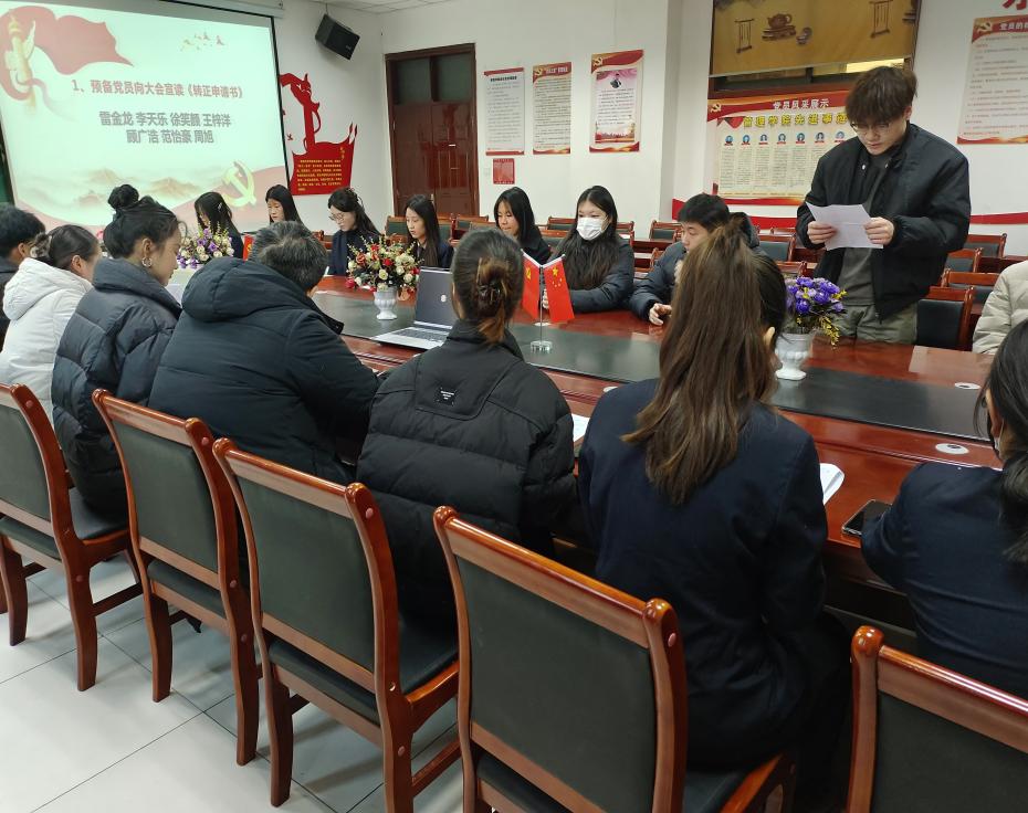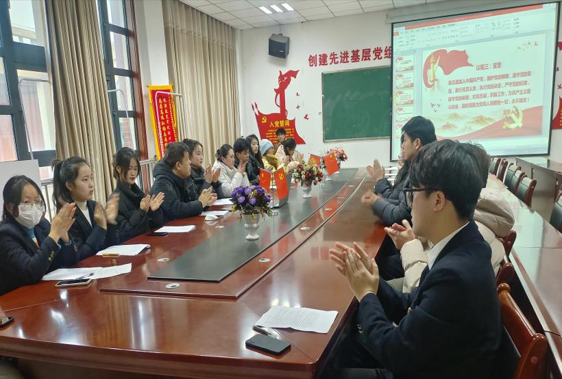 会议共有五大议程:第一议程,全体起立,奏唱中华人民共和国国歌。第二议程由徐笑颜等4名预备党员汇报自己的思想、学习、工作情况。第三议程,由入党介绍人介绍党员发展对象的有关情况。第四议程,讨论徐笑颜等4名同志入党问题,进行表决,形成决议。第五议程,由第一支部韩安宜书记宣读计票结果并公布支部大会决议。第六议程,进行宣誓。