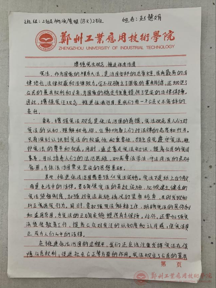 为了弘扬中国特色社会主义法治精神,培育和践行社会主义核心价值观,保障国家的政治稳定和社会秩序,使入党积极分子更加自觉地尊重和遵守国家的基本法律,树立为祖国发展贡献力量的理想。2024年12月6日公司党委组织特开展“增强宪法观念,推进依法治国”主题征文活动。