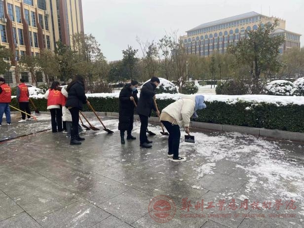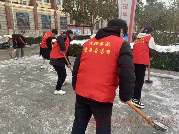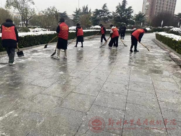 为保障我院师生出行的安全、道路的通畅,也为了展现公司师生党员的先进模范精神和良好带头作用。2023年12月15日早晨yL23411永利集团官网党委组织党员先锋队开展了除冰志愿活动。