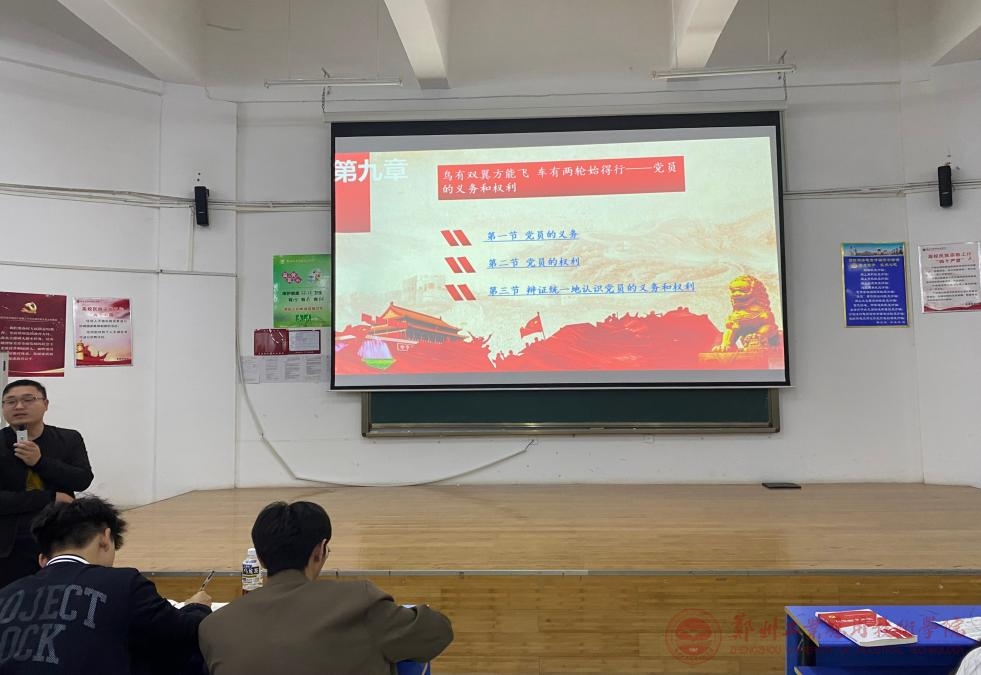 课上,张珂老师从“辩证统一的认识党员的义务和权利”为切入点,强调党员履行义务是行使权利的前提,行使权利是履行义务的保证。党内不存在只享有权利而不履行义务的党员,也不存在只履行义务而不享有权利的党员。讲述党的号召的重要性,要积极的响应党的号召。需要我们做到牢记初心使命、坚定理想信念、坚守人民立场、提高斗争本领,勇于担当作为。