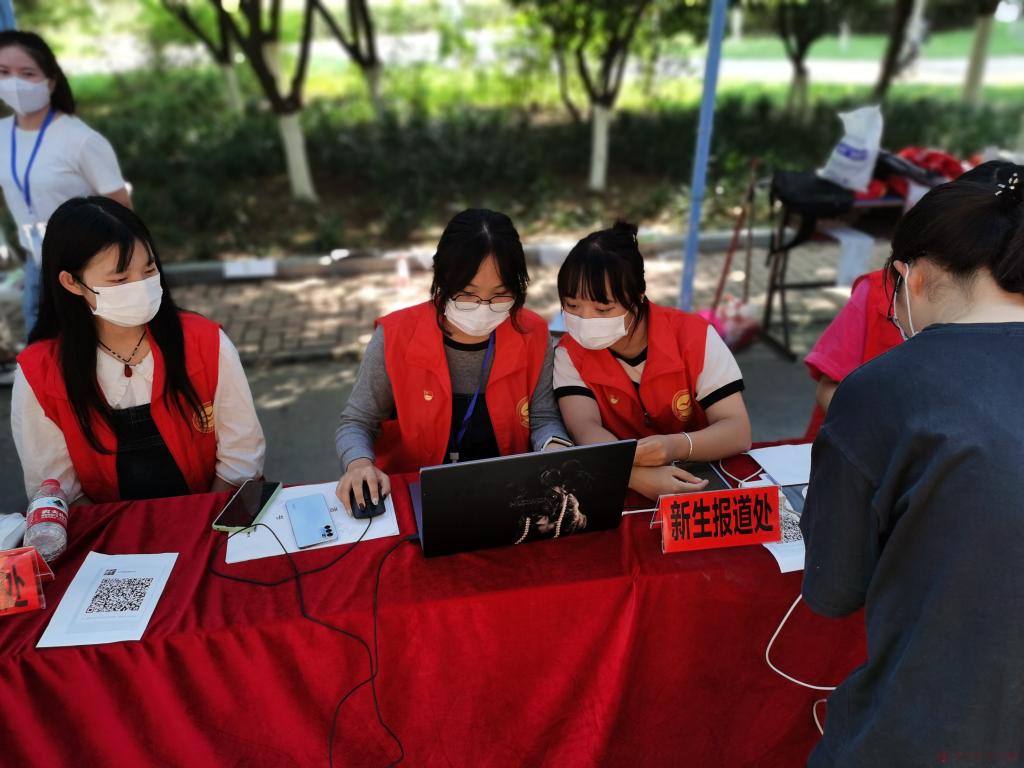 特殊时期,疫情防控必不可少,工作中,党员志愿者发扬伟大抗疫精神,认真消毒、测体温,落实防控措施,切实做好疫情防控工作,为广大师生营造了安全良好的校园环境,保障迎新工作顺利进行。