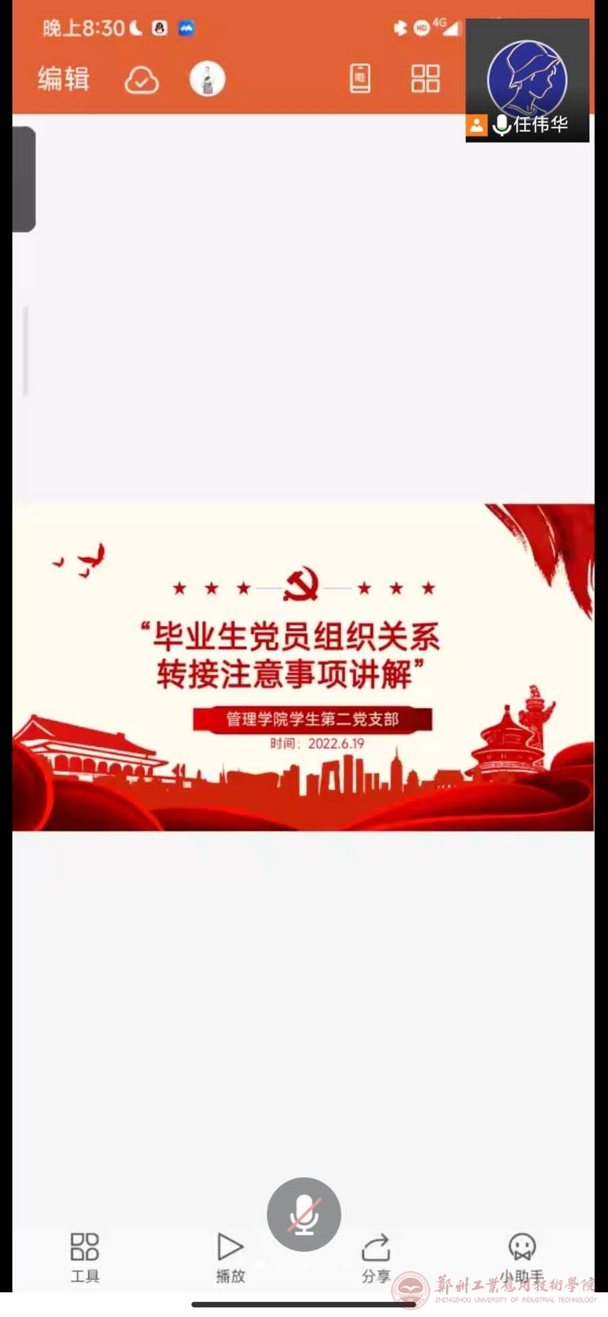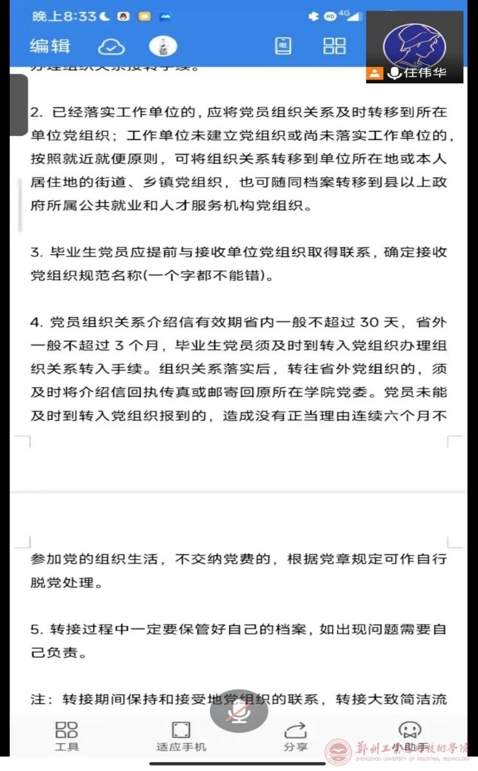 此次会议主要讲解了有关河南省范围内接转党员组织关系的具体流程和要求,以及转接时的注意事项,会议中,任伟华着重强调:转接过程中一定要保管好自己的档案,不可粗心大意。