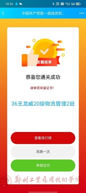 此次竞赛由中共河南省委统战部、河南广播电视台主办,通过网络知识竞赛的方式,引导广大统战干部、统战成员以及社会各界人士认真学习中国共产党统一战线史和《中国共产党统一战线工作条例》,以赛促学、以赛促宣,扩大影响、凝聚共识,充分调动了同学们学习统战知识的积极性,帮助提升全体同学统战知识水平,在公司掀起了学习进步、踊跃参赛的工作热潮,充分展现了公司学子的良好精神风貌,为迎接党的二十大胜利召开营造了良好氛围。