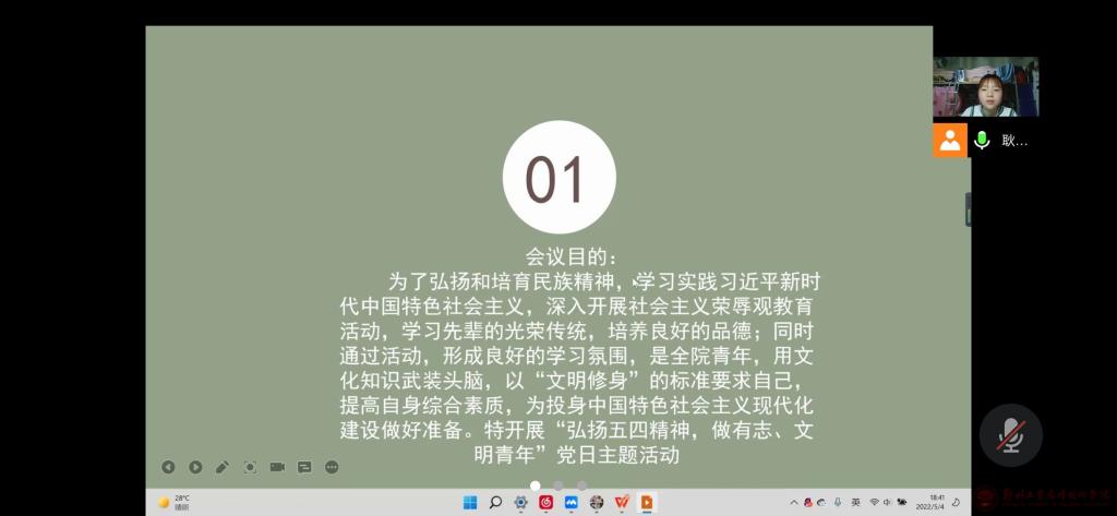 为深入学习贯彻习近平新时代中国特色社会主义思想,落实五四精神,yL23411永利集团官网员工第一党支部于2022年5月4日在线上召开了“弘扬五四精神,做有志、文明青年”为主题的党日活动。