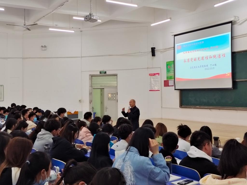4月30日下午14:00-15:30,丁心境老师带领同学们一同学习了永葆党的先进性和纯洁性对中国共产党发展和前进的重要性。保持党的纯洁性是马克思主义政党的本质要求,也是党的性质和宗旨的重要体现。丁老师向同学们讲到:保持党的纯洁性重在思想学习教育,我们要强化学习,明确目标要求、重要意义和步骤,确保学习教育活动取得实效。认真学习《党章》、《中国共产党党员领导干部廉洁从政若干准则》等党内法规和规定,坚定理想信念,在真正成为一名中国共产党员之前树立起责任意识,能够真正为人民服务。