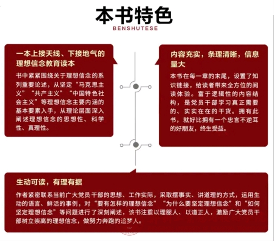 本书主要围绕“党员干部要有怎样的理想信念”、“为什么要坚定理想信念”和“如何坚定理想信念”等问题,紧密联系党员干部的思想、工作实际,对党员干部树立崇高的理想信念、不忘初心、砥砺前行等方面的要求进行了深刻阐述,是帮助广大党员干部树立远大理想、坚定崇高信念、矢志永远奋斗的学习材料,是各领域、各战线开展“不忘初心、牢记使命”主题教育较为实用的辅导读物。