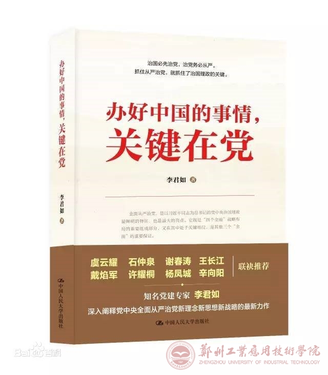 由中共中央党校原副董事长李君如创作的政治理论著作,首次出版于2016年4月。该书将全面从严治党放在党治国理政的大视野下进行审视和分析,紧紧围绕着“两个关键在党”,即“关键在党的领导,关键在党的建设”,提高党的领导和执政能力、增强党拒腐防变和抵御风险能力,始终保持党的先进性和纯洁性,最终实现党承担的“办好中国事情”任务。全书一共分为九个章节,分别从治国必先治党、治党务必从严、反腐倡廉和密切党群众关系的两场斗争、在我们的体制下能否坚持全面从严治党、全面从严治党关键在从严治吏、全面从严治党最重要的是中央领导层的建设等九个方面探讨全面从严治党对办好中国事情的重要性。李君如在书中得出结论:要“办好中国的事情”,就要把中国特色社会主义“伟大事业”和党的建设新的“伟大工程”结合起来、协调推进,就要增强中国共产党的领导和执政能力,增强中国共产党拒腐防变和抵御风险的能力,而这种结合的体现就是“全面从严治党”。