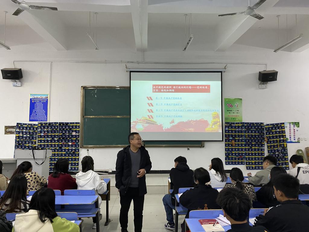 首先,孙建涛老师,首先向同学们提出:“为什么要入党?”紧接着以幽默的小故事活跃现场的气氛。孙老师向大家阐述党的性质是指党所固有的本质属性,是其区别于其他政党的最根本的特征,是它的世界观和它所代表的阶级利益的统一。对于要求人党的积极分子来说,弄清中国共产党是一个什么性质的党,正确认识党的性质,保持党的先进性,端正自己的政治立场,这是必须首先解决的问题。党的宗旨是党的一切行动的根本出发点和归宿。中国共产党的宗旨是全心全意为人民服务。党章明确规定:“坚持全心全意为人民服务,党除了工人阶级和最广大人民群众的利益,没有自己特殊的利益。”中国共产党在社会主义初级阶段的基本路线是“领导和团结全国各族人民,以经济建设为中心,坚持四项基本原则,坚持改革开放,自力更生,艰苦创业,为把我国建设成为富强民主文明和谐美丽的社会主义现代化强国而奋斗”。