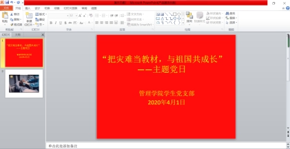 为响应教育厅和公司党委号召,进一步激发员工党员的责任担当,树立其把灾难当教材,把困难当磨砺,与祖国共成长的责任意识,公司员工党支部通过线网络开展“把灾难当教材,与祖国共成长”主题党课。