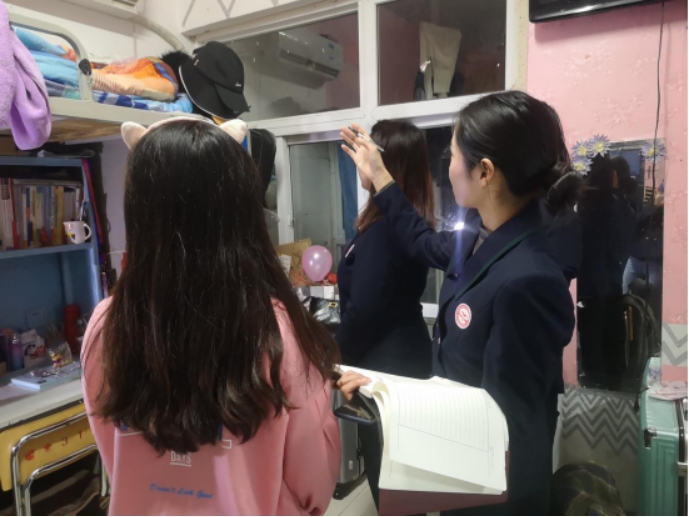 学雷锋志愿者服务队认真了解查宿舍工作