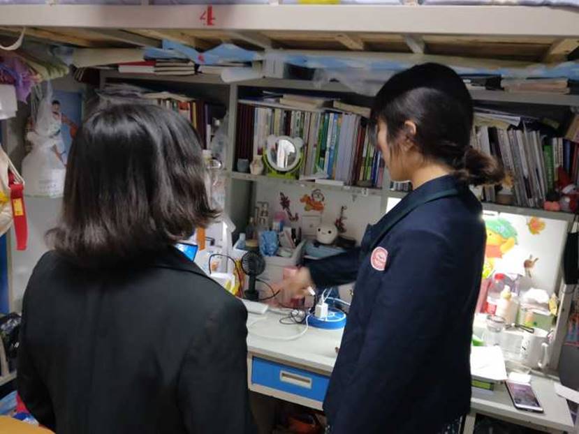 在走访和检查宿舍的过程中,第十党员工作站的同学们仔细询问了员工的学习、生活等情况,认真查看了寝室卫生情况,逐项排除安全隐患,鼓励员工积极做好期末考试复习工作,并要求同学们要注意人身和财产安全,进一步加强自我防范意识。