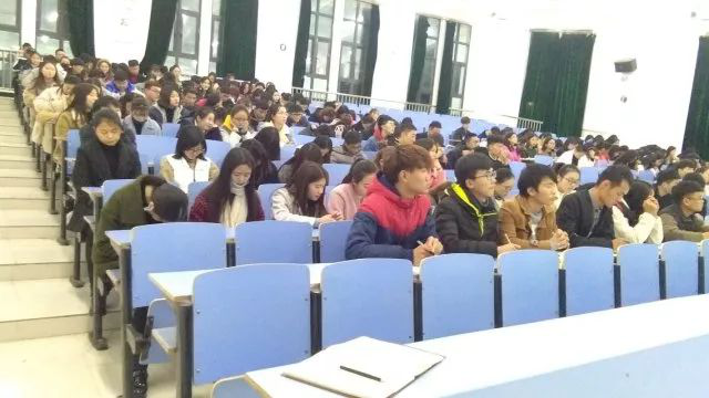 在报告开始之前,张教授让两名党员朗诵两首诗,它们分别是《行香子·十九大》和《弄潮儿》,情绪饱满的朗诵使诗更加富有感染力,并为张教授的报告拉开了序幕,随后张教授从以下几个方面(即:六个新、八个数、十道题、一句话)引导大家认真学习十九大精神,鼓励大家为宣传贯彻十九大精神做出努力。