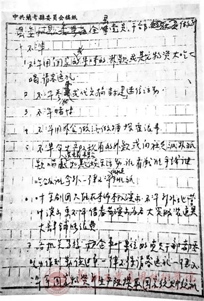 图为焦裕禄亲自起草的《全县党员干部做到“十不准”》