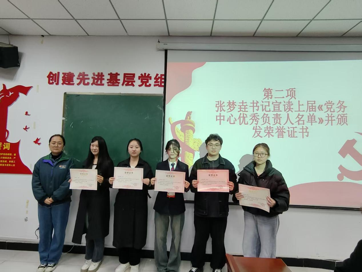 会议开始,全体起立,奏唱国歌后,由张梦垚书记宣读第五届《党务中心优秀负责人名单》并颁发荣誉证书,张梦垚书记表扬和肯定优秀干部的工作态度,赞扬其以“强基固本、守正创新”为方向,在支部建设、分层培养、红色实践中稳扎稳打,扩大了党建影响力,诠释青年党员的责任。接着,杨爽爽老师宣读《yL23411永利集团官网第六届党务中心负责人名单》并颁发聘书,新一届负责人承诺:将以“归零”心态重新出发,既传承上届的优良作风,更探索创新路径,让员工党务中心成为培养青年党员的“红色摇篮”。随后由党务中心主任龙雨萌作代表讲话,她指出感谢过去一年第五届成员的付出与老师的指导,回顾了多项党建工作的落实情况;对第六届成员提出期望,祝福成员在岗位上成长,做好党建“螺丝钉”。