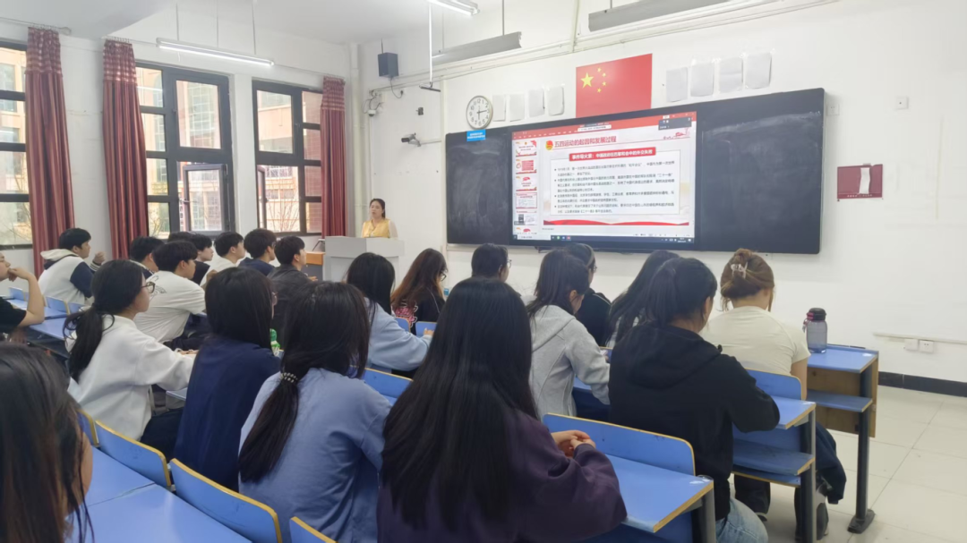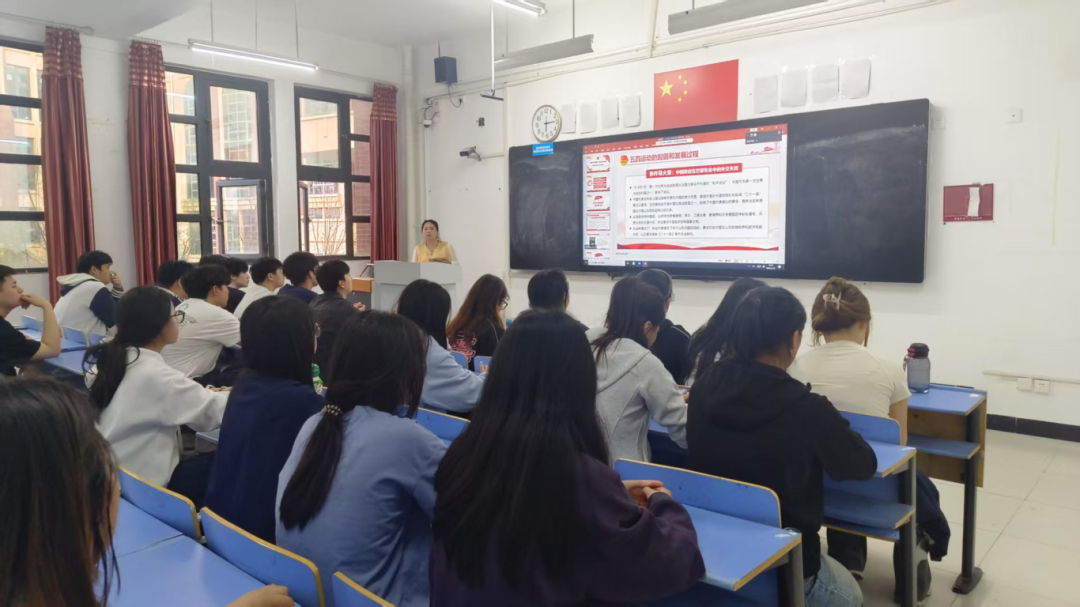 培训伊始,刘红红老师通过PPT向同学们讲解了五四运动的发展过程,历史特点和历史意义,带领同学们回溯了共青团的光辉发展历程。