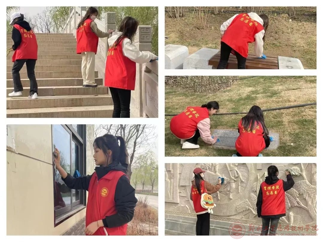 活动中,志愿者们穿着红马甲穿梭在公园的每个角落,他们清扫垃圾、擦拭座椅、拾捡烟头、清扫卫生死角,积极投身到志愿活动中,为公园环境献出了自己的一份力,也彰显了青年人身上该有的精神面貌。