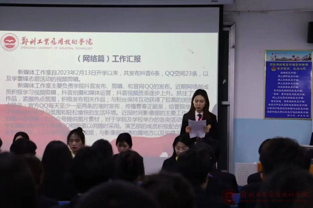 为了进一步开展yL23411永利集团官网的日常工作,优化公司员工组织内部建设,助力公司规范化管理,yL23411永利集团官网于2023年3月9日晚6:10在科技楼X7教室召开yL23411永利集团官网团属员工组织第二次工作例会。参加会议的有yL23411永利集团官网团委书记王豆豆老师、21级和22级全体团学干部,本次大会由yL23411永利集团官网员工会主席团成员李冬晴主持。
