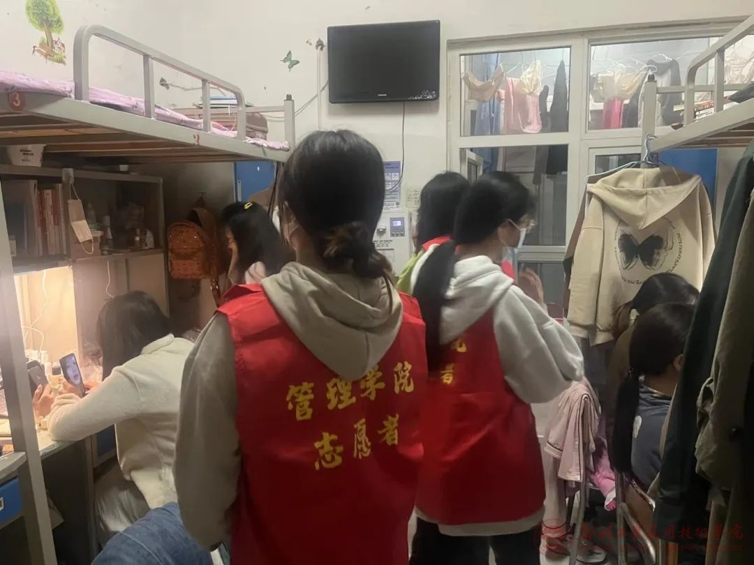 通过安全隐患排查,为同学们营造更好的学习氛围,保证同学们的生活学习质量,共同创造温馨美好的宿舍小家。在本次活动中,志愿者积极进行宿舍安全隐患排查,细致对员工寝室卫生,通风, 用电用水安全进行排查。排查中发现,员工宿舍卫生情况良好,生活用品摆放有序,彰显了管院学子的文明风采。