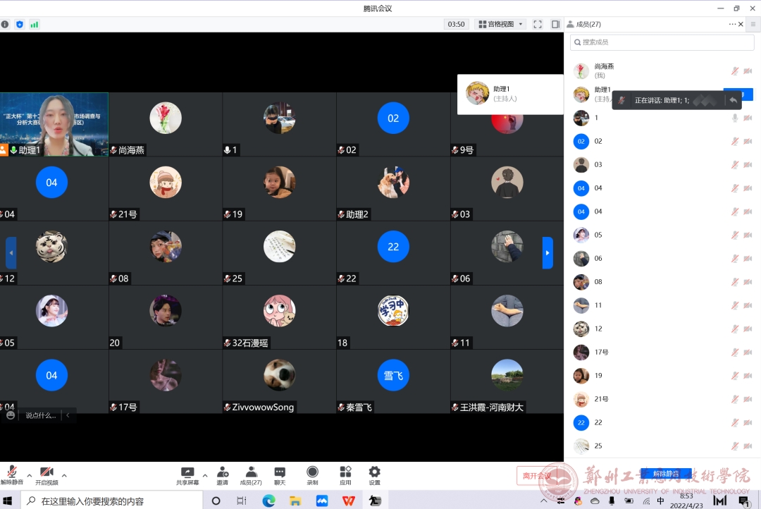 2022年4月23日,“正大杯”第十二届全国老员工市场调查与分析大赛本科组河南赛区选拔赛在腾讯会议拉开帷幕,比赛分作品视频展示和专家提问答辩两个部分进行。公司首次参赛,在公司yL23411永利集团官网尚海燕、傅珍珍、杨姗姗等7位老师的精心指导下,由付皓天、冯闯、李心蕊、王梦丹等20名员工组成的4支参赛队伍喜获佳绩,获得国家三等奖1项、省级一等奖1项、省级三等奖2项。