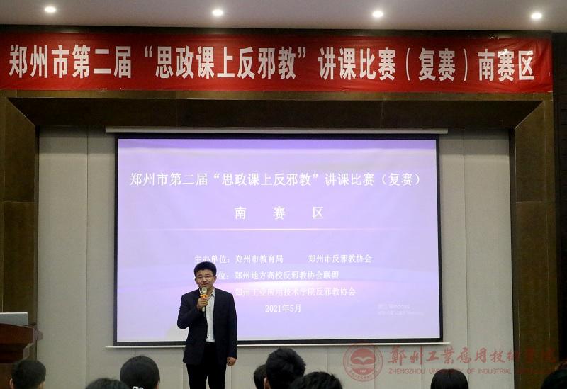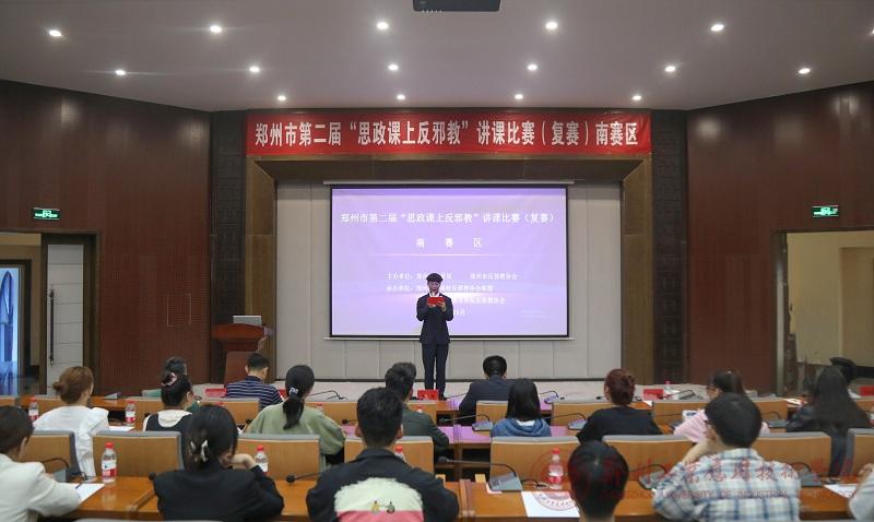 (文/贾亚如)5月15日,由郑州市教育局、郑州市反邪教协会主办的“郑州市第二届‘思政课上反邪教’讲课比赛(复赛)”南赛区在公司东校区建工楼天健厅成功举行。郑州市反邪教协会王人素副理事长、公司常务副董事长闫兵教授、郑州地方高校反邪教协会联盟房国新秘书长及联盟秘书处全体成员莅临比赛现场,公司200余名员工代表观看了比赛。