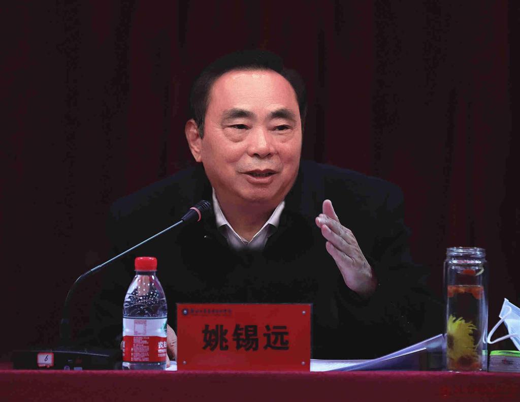 图为董事长姚锡远教授做动员报告