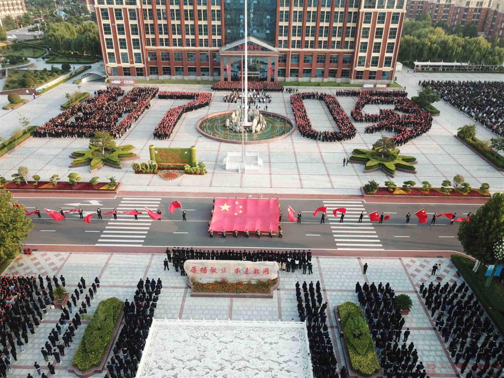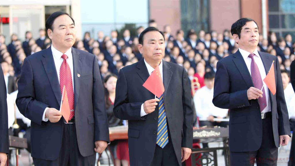 集团领导班子与全校近三万名师生挥舞国旗,同唱《歌唱祖国》,热情洋溢,歌声嘹亮,振聋发聩,场面震撼,瞬时燃起师生激情,歌声在校园上空久久回荡。