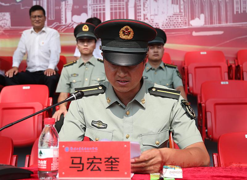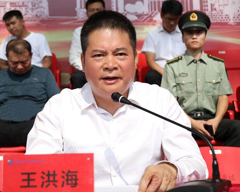 董事长助理王洪海副教授在军训动员讲话中在总结了近年来办学取得辉煌成绩,希望同学们在这美丽、生机勃勃的大公司园里,开启人生新征程,自觉把个人的成才梦融入中华民族伟大复兴的中国梦,以公司致力开展的学风建设相结合,以公司正在开展的“我在为谁学习”主题教育活动相结合,以学习贯彻全国教育大会精神相结合,明确学习目标,端正学习态度,发扬“求知永不言弃,创业永不言败,人生永不言悔”的郑工精神,树立“我在为谁学习”的正确观,牢固树立“四个意识”,坚定“四个自信”,力争成为社会需要的高素质人才。
