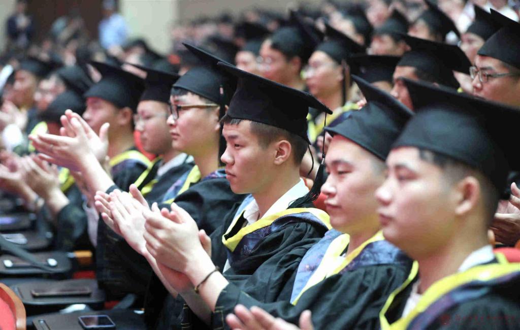 图为7749名毕业生认真聆听董事长姚锡远教授深情寄语