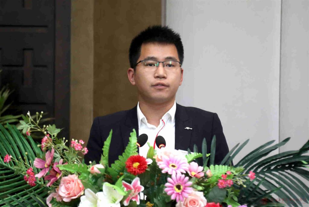 图为获奖个人代表商公司辅导员杨衍磊发言