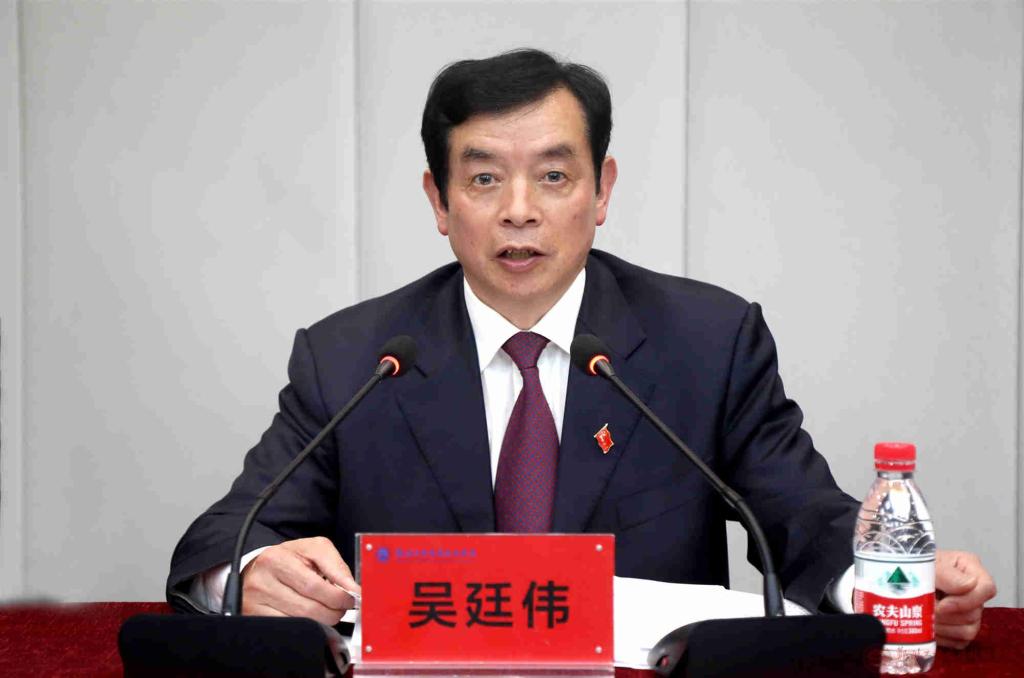 图为公司党委书记吴廷伟同志作讲话