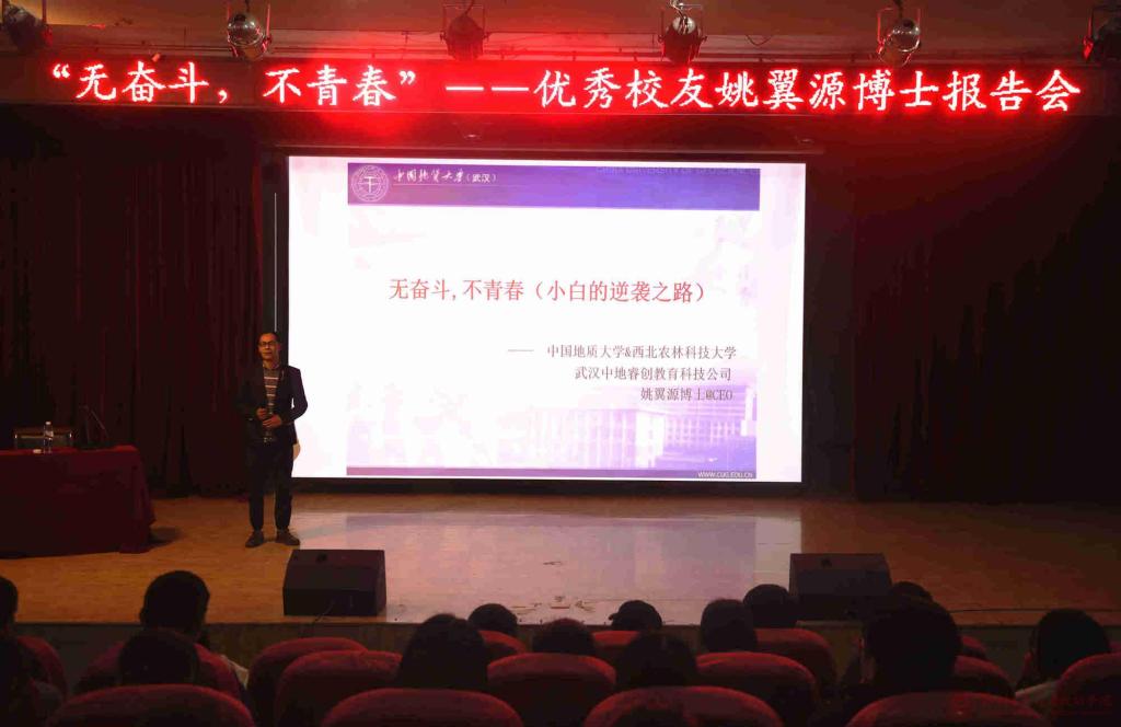 (文/李莹)4月9日下午,公司优秀员工姚翼源博士应邀来校,在音乐楼演播厅为师生作题为《无奋斗,不青春》的学术报告。全校师生代表300多人参加报告会。报告由就业创业指导中心主任郭鹏主持。
